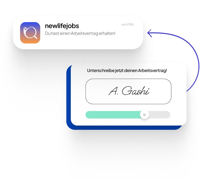 NewLifeJobs offers an innovative digital contract signing solution that simplifies the application and hiring process for employers and applicants alike. By integrating modern technology, we enable companies and candidates to sign contracts quickly, securely and conveniently online, without the need for physical documents or time-consuming administrative processes.