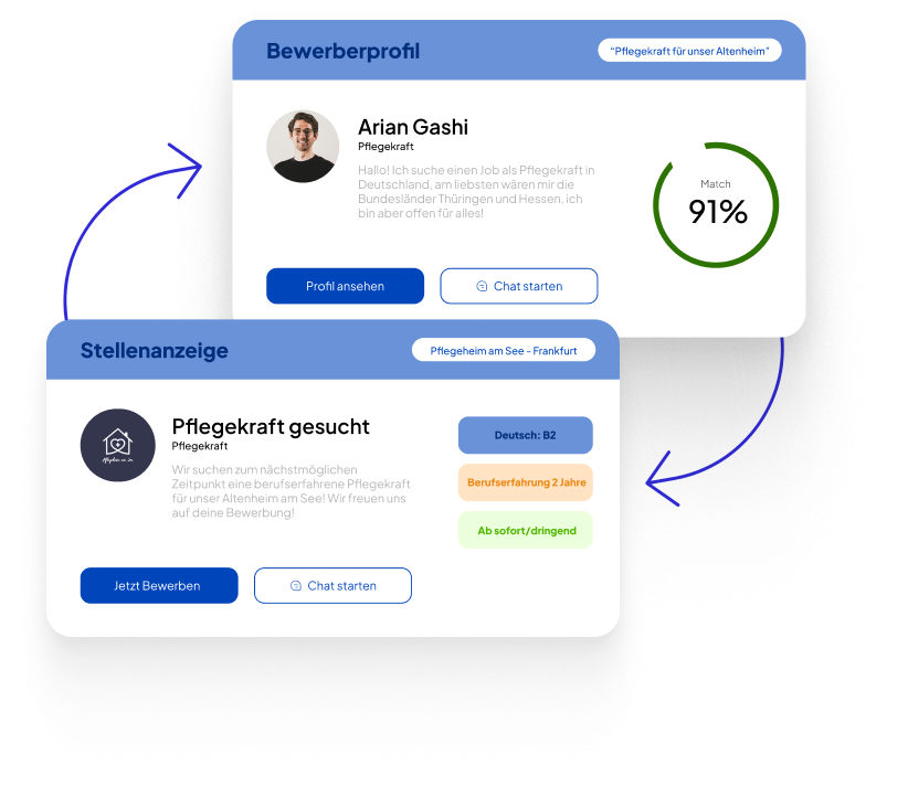 Our AI-based matching technology for companies and job seekers revoltionises the way people find their dream career in Germany and companies find their ideal employees. For companies, this means that the ideal employee is just a few clicks away.